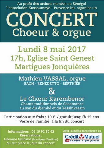 profit de ses actions en Casamance.Le Lundi 8 mai à 17h00 Église Saint Genest Martigues Jonquières